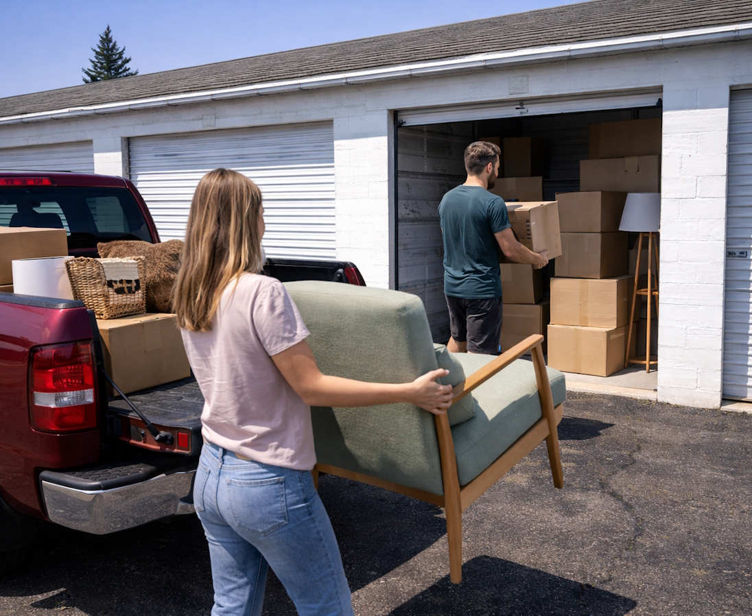 Wide, paved drive lanes with enough space to back moving trucks up to most units for easy loading and unloading.